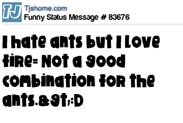 X says I hate ants but I love fire= Not a good combination for the ants.>:D