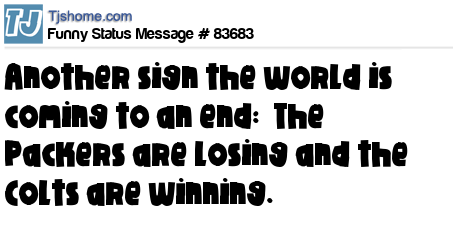 X says Another sign the world is coming to an end: The Packers are losing and the Colts are winning.