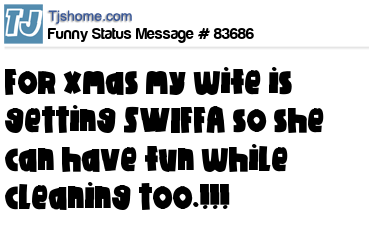 X For xmas my wife is getting SWIFFA so she can have fun while cleaning too.!!!