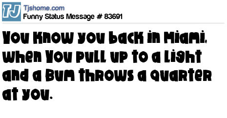 X is You know you back in Miami, when You pull up to a light and a Bum throws a quarter at you.