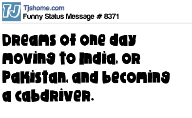 - # 27676 Dreams of moving to India or Pakistan.....and becoming a Taxi driver
