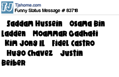 X β Saddam Hussein β Osama Bin Ladden β Moammar Gadhafi βKim Jong IL β Fidel Castro β Hugo Chavez β Justin Beiber