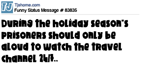 X During the holiday season"s prisoners should only be aloud to watch the travel channel 24/7..