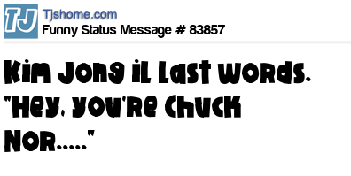 - # 84115 .... It's now being reported on the news that Kim Jong Il's very last words before he died were ......... "Hey, .... Aren't you Chuck Nor..............."