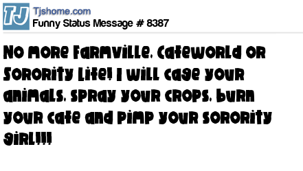 X says no more Farmville, Cafeworld or Sorority Life! I will cage your animals, spray your crops, burn your cafe and pimp your sorority girl!!!