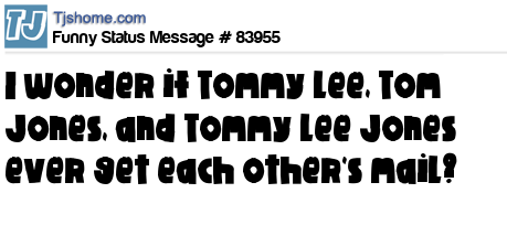 - # 148504 I wonder if Tommy Lee, Tom Jones, and Tommy Lee Jones all get each other's mail.