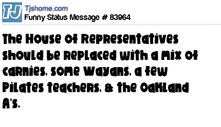 X The House of Representatives should be replaced with a mix of carnies, some Wayans, a few Pilates teachers, & the Oakland A's.