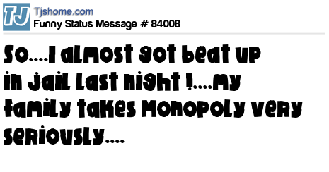 - # 166690 I almost got raped in jail. My family takes monopoly way too seriously.