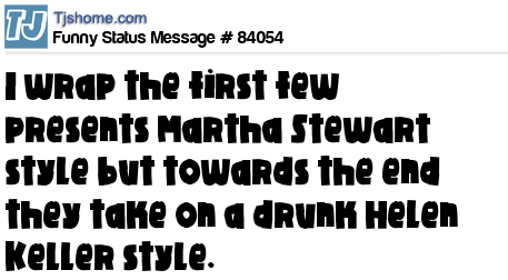 X is I wrap the first few presents Martha Stewart style but towards the end they take on a drunk Helen Keller style.