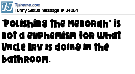 X "Polishing the Menorah" is not a euphemism for what Uncle Irv is doing in the bathroom.