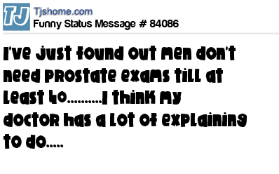 X I've just found out men don't need prostate exams till at least 40..........I think my doctor has a lot of explaining to do.....