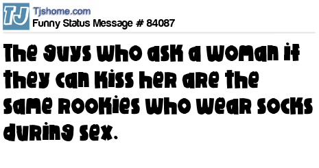 X says The guys who ask a woman if they can kiss her are the same rookies who wear socks during sex.