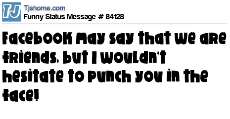 - # 70844 Facebook says we're 'friends' but, trust me, I wouldn't hesitate to punch you in the face.