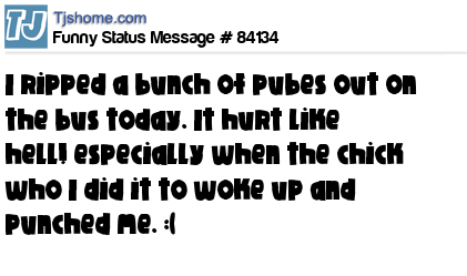 X is I ripped a bunch of pubes out on the bus today. It hurt like hell! especially when the chick who I did it to woke up and punched me. :(