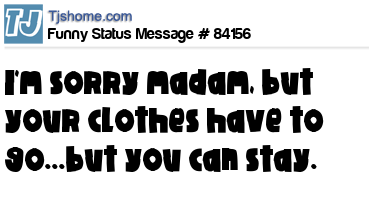 X says I'm sorry madam, but your clothes have to go...but you can stay.
