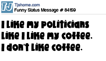 X is I like my politicians like I like my coffee. I don't like coffee.