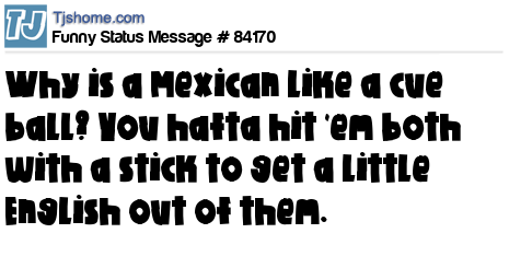 X Why is a Mexican like a cue ball? You hafta hit 'em both with a stick to get a little English out of them.