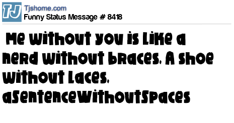 - # 7652 me without you is like a nerd without braces, a shoe without laces, a sentencewithoutspaces...