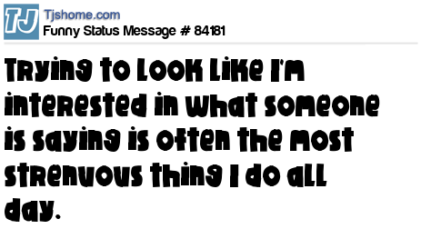 X says Trying to look like I'm interested in what someone is saying is often the most strenuous thing I do all day.