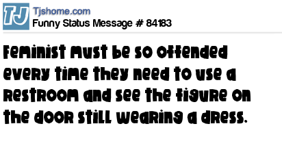 X says Feminist must be so offended every time they need to use a restroom and see the figure on the door still wearing a dress.