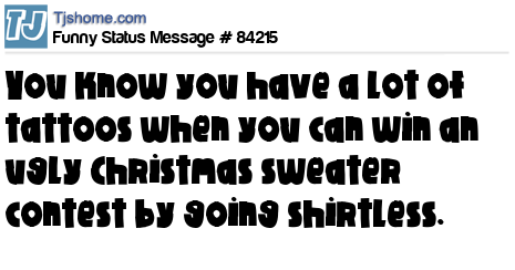 X You know you have a lot of tattoos when you can win an ugly Christmas sweater contest by going shirtless.