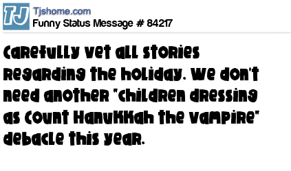 X Carefully vet all stories regarding the holiday. We don't need another "children dressing as Count Hanukkah the vampire" debacle this year.
