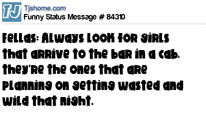 X says Fellas: Always look for girls that arrive to the bar in a cab, they're the ones that are planning on getting wasted and wild that night.