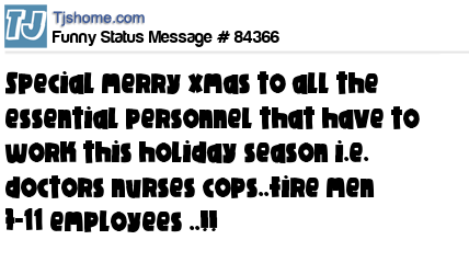 - # 84368 Special merry xmas to all the essential personnel that have to work this holiday season i.e. doctors nurses cops..fire men 7-11 employees ..!!