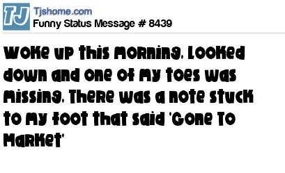 X Woke up this morning, looked down and one of my toes was missing, There was a note stuck to my foot that said 'Gone To Market'