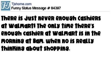 X says There is just never enough Cashiers at Walmart! The only time there's enough cashier at Walmart is in the morning at 8am, when no is really thinking about shopping.