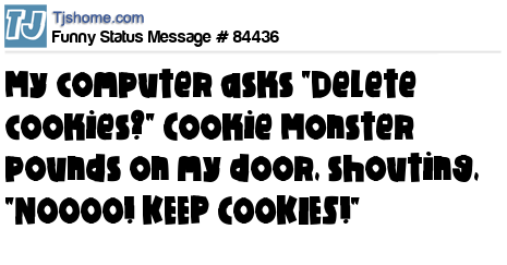 X My computer asks "Delete cookies?" Cookie Monster pounds on my door, shouting, "NOOOO! KEEP COOKIES!"