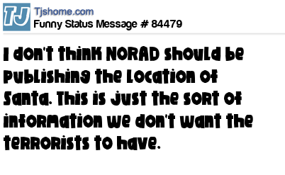 X I don't think NORAD should be publishing the location of Santa. This is just the sort of information we don't want the terrorists to have.