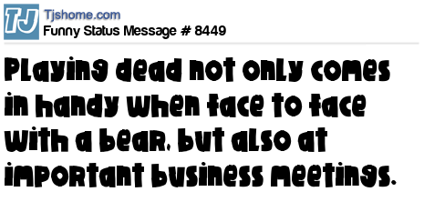 - # 15838 discovered today that playing dead only comes in handy when face to face with a bear, and NOT at important business meetings.