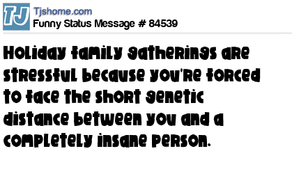 - # 84564 Holiday family gatherings are stressful because you're forced to face the short genetic distance between you and a completely sane person.