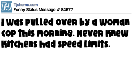 - # 97903 Today I was pulled over by a woman cop... I didn't know kitchens had speed limits