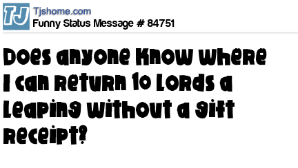 X Does anyone know where I can return 10 Lords a Leaping without a gift receipt?