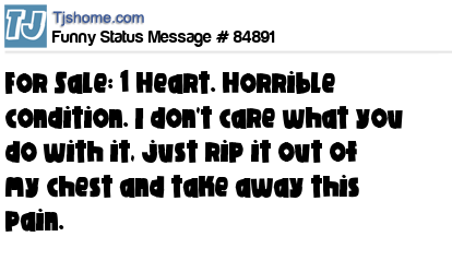 X is For Sale: 1 Heart. Horrible condition. I don't care what you do with it, just rip it out of my chest and take away this pain.
