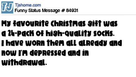 X My favourite Christmas gift was a 24-pack of high-quality socks. I have worn them all already and now I'm depressed and in withdrawal.