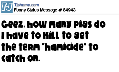 X Geez, how many pigs do I have to kill to get the term "hamicide" to catch on.