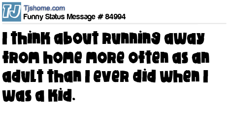 - # 121757 I don't know about you....but I have thought about running away from home way more as an adult than I ever did as a kid.