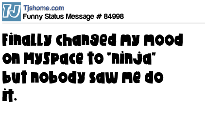 X is Finally changed my mood on MySpace to "ninja" but nobody saw me do it.