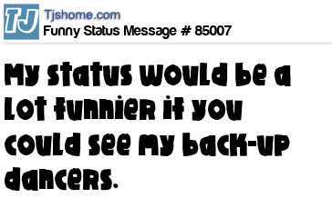 X is My status would be a lot funnier if you could see my back-up dancers.