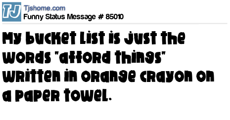 X My bucket list is just the words "afford things" written in orange crayon on a paper towel.