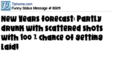X says New Years forecast: Partly drunk with scattered shots with 100 % chance of getting laid!