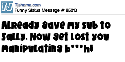 X already gave my sub to Sally. Now get lost you manipulating b***h!