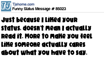 X says Just because I liked your status, doesn't mean I actually read it. More to make you feel like someone actually cares about what you have to say.