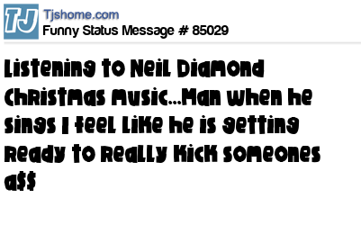 X is listening to Neil Diamond Christmas music...Man when he sings I feel like he is getting ready to really kick someones a$$
