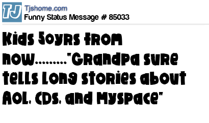 X Kids 50yrs from now........."Grandpa sure tells long stories about AOL, CDs, and Myspace"
