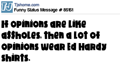 X says If opinions are like a$$holes, then a lot of opinions wear Ed Hardy shirts.