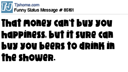 X says that money can't buy you happiness, but it sure can buy you beers to drink in the shower.